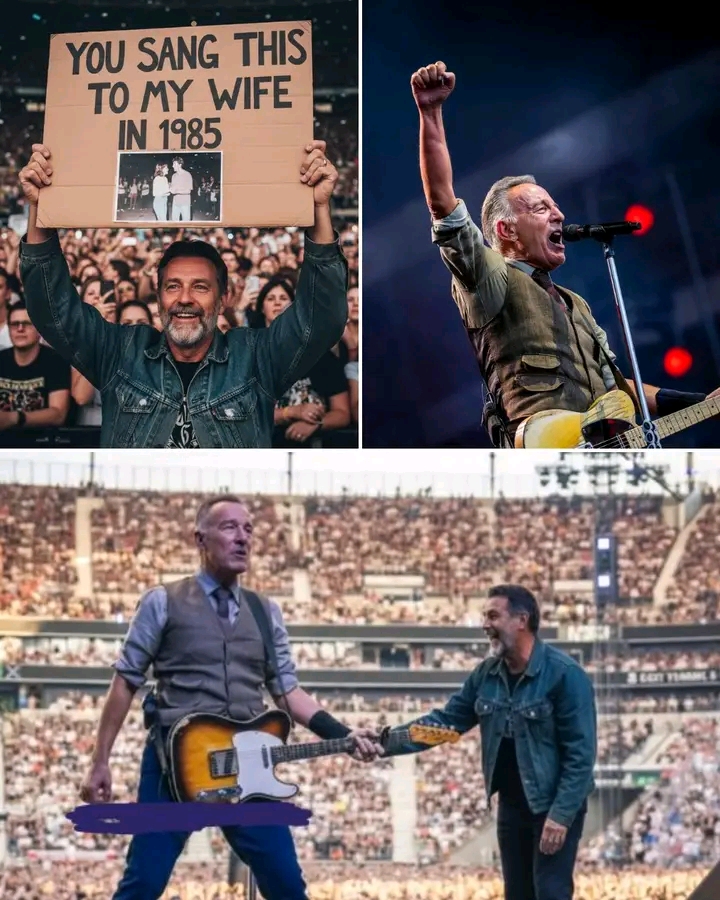 According to fan footage that has since gone viral, Bruce took a long breath, lowered his guitar, and stepped away from the mic. He pointed gently toward the man with the sign. Security, unsure of what to do, hesitated but Bruce waved them off. Then he walked down the stage steps and into the crowd, the lights still glaring but the music gone.