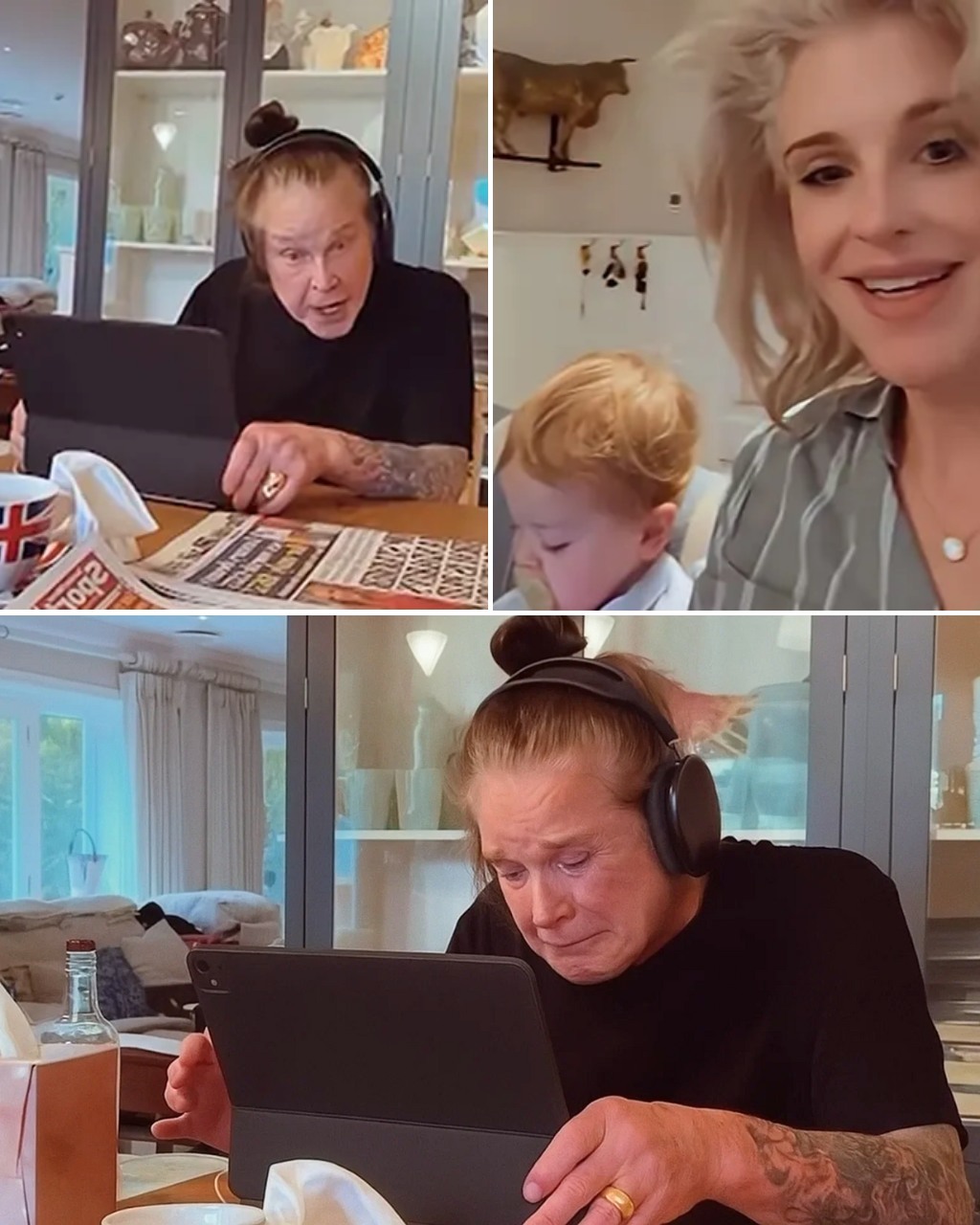 Ozzy Osbourne’s final video will break your heart. Just days before the world said goodbye to the Prince of Darkness, a quiet, deeply human moment was caught on camera—not in a stadium, not under flashing lights, but at a simple breakfast table surrounded by family. In Kelly Osbourne’s Instagram Story, the rock legend sits calmly with his headphones on, flipping through his iPad and the morning paper while his grandson plays nearby. “Dadda, say good morning,” Kelly says softly behind the camera. Ozzy looks up, gives a faint smile, and replies, “Good morning.” That’s it—no wild makeup, no screaming crowd, no heavy guitars—just a man, a father, a grandfather. For those who grew up blasting his music, watching this gentle moment feels like a punch to the chest. It’s the kind of goodbye that doesn’t need words—just silence, love, and the weight of everything he’s meant to generations…