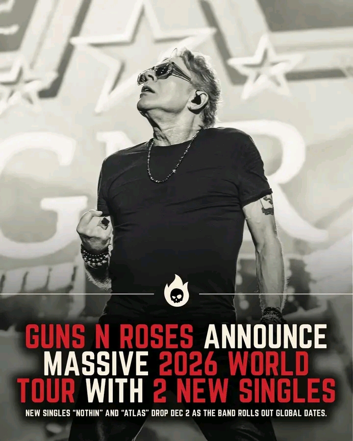 In a move that sent shockwaves through the entire rock world before fans even had time to refresh their feeds, Guns N’ Roses have officially announced their massive 2026 World Tour a globe-crushing run that tears through South America, Europe, Canada, and the United States, promising one thing from start to finish: chaos, fire, and the full GNR storm in its rawest form.