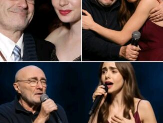 They came expecting Lily Collins — but the entire hall gasped when Phil Collins himself walked into the spotlight, turning an ordinary tour night into something no one believed they were actually seeing. For a moment you can see Lily freeze, her eyes widening the second she realizes her father is standing beside her with a mic in hand, the crowd erupting before a single note is sung. And when their voices blend — her bright tremble, his weathered warmth — the room shifts into something that feels less like a concert and more like a family memory unfolding in real time. People in the front rows were already crying, whispering that they were watching love and legacy collide right there onstage. Lily reaches for his hand mid-chorus, and the look Phil gives her has fans replaying the footage in disbelief. It’s the kind of moment you can’t script, can’t rehearse, can’t ever get back — a father and daughter meeting in the middle of a song they’ll never forget…