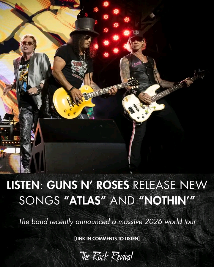 Rock fans, buckle up because Guns N’ Roses have just blown the doors off 2026 before the year has even arrived. Only days after announcing their colossal 2026 world tour, the band stunned the industry by dropping two brand-new songs, titled “Atlas” and “Nothin’.” Yes, it’s happening: GNR is officially in new-music mode, and the reaction across the rock universe is nothing short of explosive.