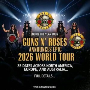 Get ready, because the biggest hard-rock announcement of the decade has officially dropped and it’s nothing short of earth-shaking. Guns N’ Roses, the band that defined chaos, danger, melody, and metal for an entire generation, has confirmed a massive 2026 World Tour with 35 explosive shows across North America, Europe, and Australia. And if fans thought they’d seen it all during the “Not in This Lifetime” era, the band is making one thing very clear: