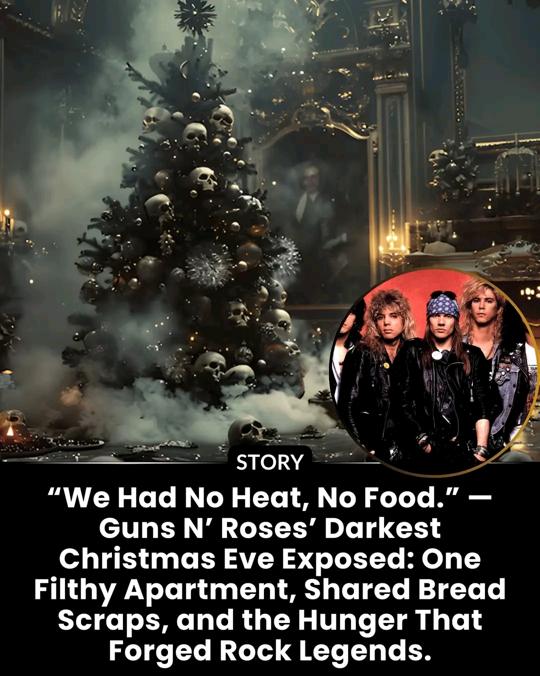 We Had No Heat, No Food.” — Guns N’ Roses’ Darkest Christmas Eve Exposed: One Filthy Apartment, Shared Bread Scraps, and the Hunger That Forged Rock Legends. Before they conquered the world, Guns N’ Roses spent Christmas Eve in a freezing “Hell House” with no heat and only bread scraps to share. While others partied, they huddled under dim lights, fueled by a literal hunger that birthed rock’s most dangerous sound. Read their untold survival story….