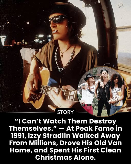 While the rest of Guns N’ Roses flew between continents surrounded by entourages, Izzy chose the opposite. His old van wasn’t glamorous. It wasn’t fast. It wasn’t impressive.