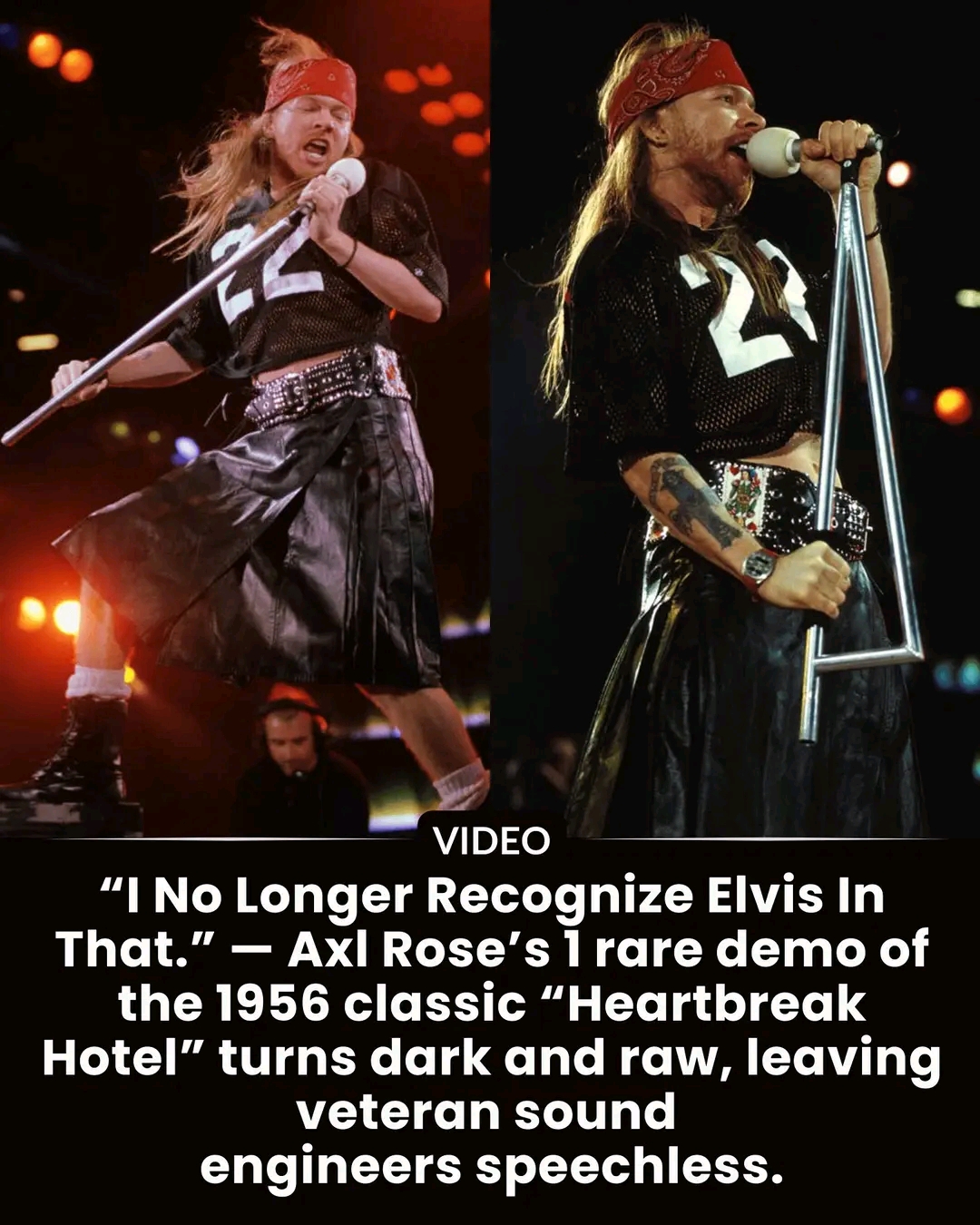 Somewhere deep in the vaults of Sound City Studios lies a recording that still makes veteran engineers go quiet when it’s mentioned. A grainy, unreleased 1986 demo. One mic. One band on the brink of history. And one voice—Axl Rose—taking Elvis Presley’s pristine 1956 classic “Heartbreak Hotel” and dragging it into the shadows.