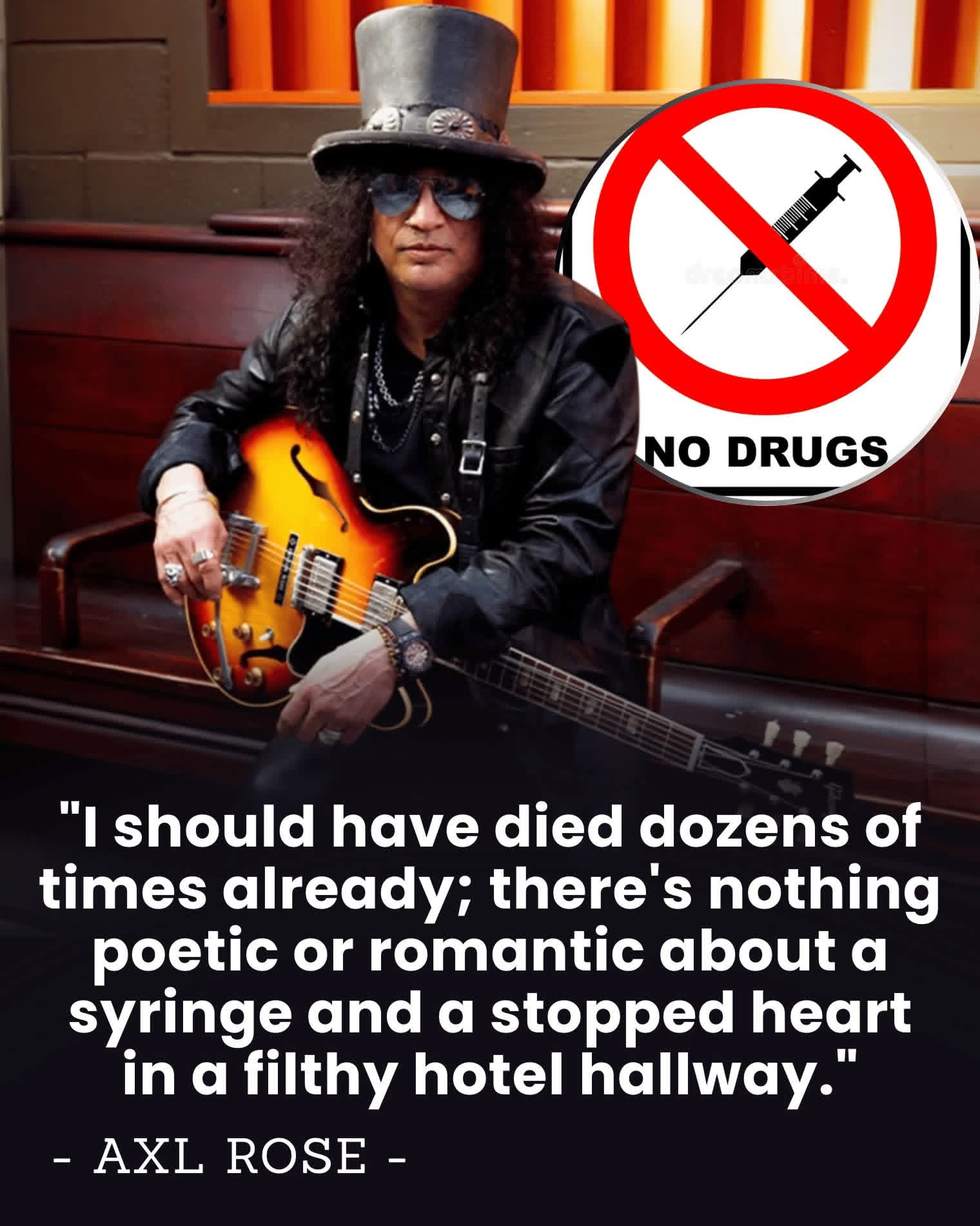 For decades, the rock-star lifestyle has been sold as a glittering dream: screaming fans, endless nights, limitless excess. Sex, drugs, guitars, and immortality. But Slash the top-hatted guitar god whose riffs powered Guns N’ Roses into history is here to tell you something most legends never admit.
