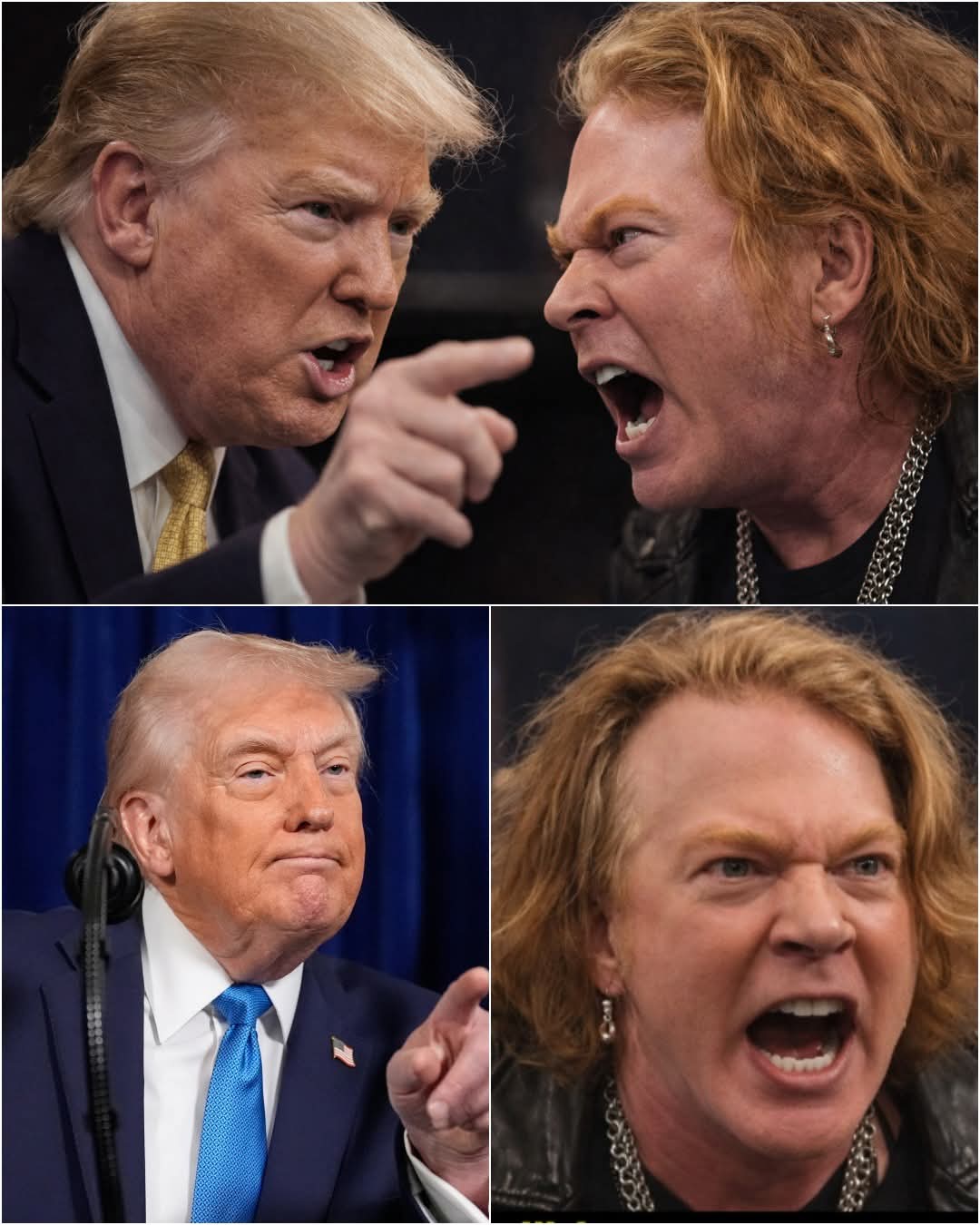 When Trump pointed to the band and said, “Play Sweet Child O’ Mine” it was already too late. Axl Rose, watching from the sidelines, stepped up to the press riser, his voice sharp. “That song is about freedom, not politics.” Trump smirked. “Axl should be thankful anyone’s still playing his stuff.” Axl didn’t blink.“My music connects people, not divides them,” he shot back. “You’re twisting it.” The tension was thick. Trump smirked again. “You should be honored.” Axl’s response was calm, yet firm. “Music belongs to the people, not politicians.” He walked away, leaving the silence to speak for itself. Axl didn’t need another word. The moment was enough….