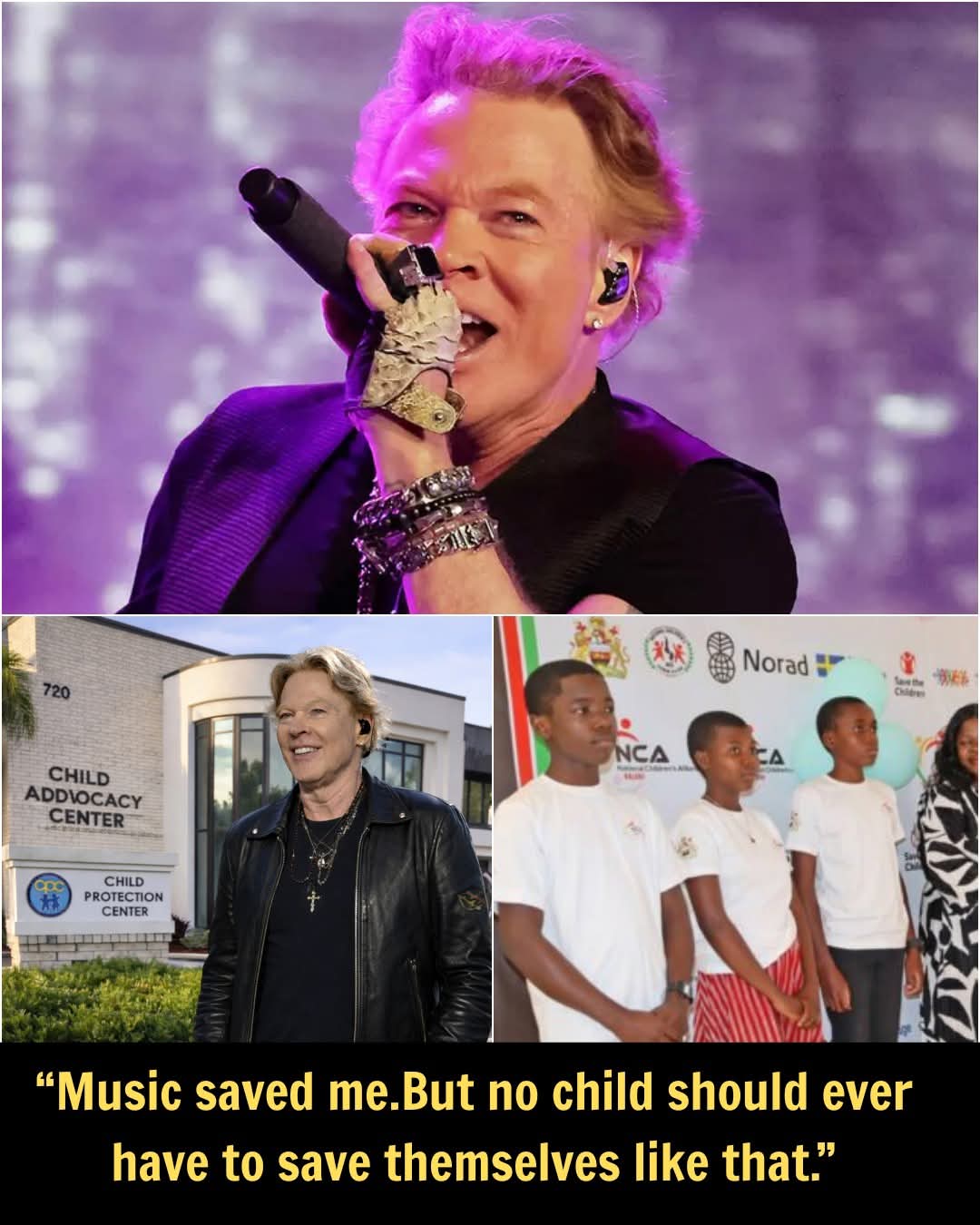 AXL ROSE QUIETLY STEPPED INTO THE NATIONAL CHILDREN’S ALLIANCE — AND LEFT WITHOUT A NAME That morning, the National Children’s Alliance felt different. Softer lights. Quieter rooms. New books and plush toys where fear once lived. No one knew why. Until Axl Rose appeared. No leather jacket. No sunglasses. Just a man standing silently before children’s drawings — the past staring back. Before leaving, he asked for one thing: Don’t put his name on it. “Don’t make them prove their pain,” he said. “I’ve done that my whole life.” The world knows Axl Rose for rage. Here, he is remembered for silence — and for making sure no child has to grow up in it…..