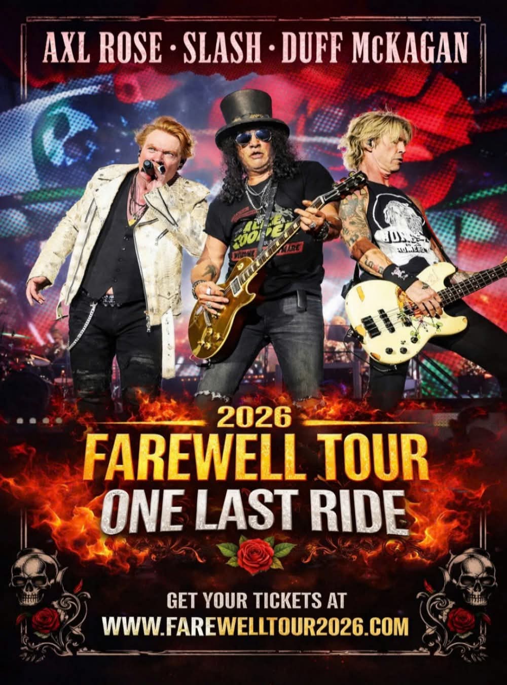 BREAKING NEWS: Axl Rose, Slash & Duff McKagan Announce 2026 Farewell Tour: “One Last Ride” This marks the end of an era for these modern music titans. Tour dates and cities just revealed on the big screen!….
