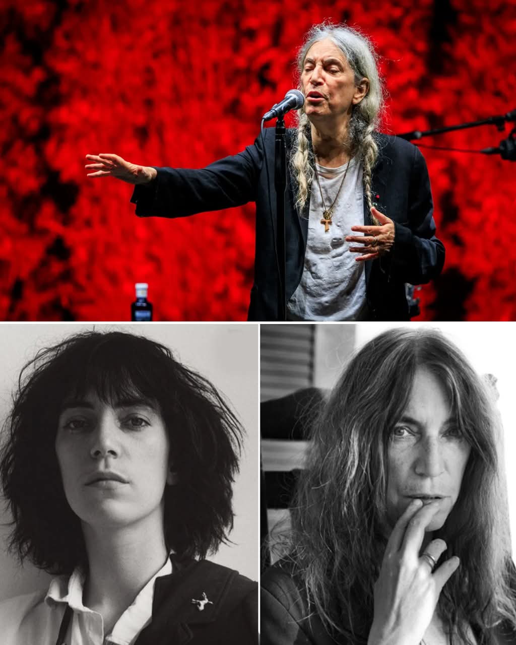 The lights dimmed. A low hum rolled through the venue. Then Patti Smith yes, that Patti Smith walked slowly onto the stage, microphone in hand, hair silver, posture calm, eyes burning with that same rebel fire she’s carried since the 1970s. At 78 years old, the woman long crowned the Godmother of Punk didn’t come to reminisce. She came to detonate something sacred.