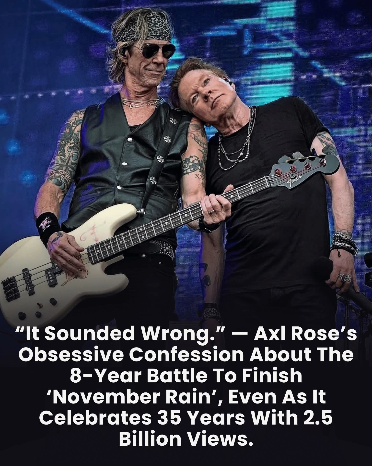 Now, in 2026, as November Rain officially crosses 35 years and racks up an almost unfathomable 2.5 BILLION views, that confession doesn’t sound like madness anymore. It sounds like prophecy.