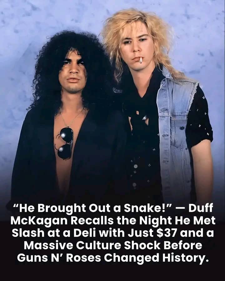 He Brought Out a Snake!” Duff McKagan Recalls the Night He Met Slash at a Deli with Just $37 and a Massive Culture Shock Before Guns N’ Roses Changed History. With just $37 to his name, Duff McKagan expected a punk-rock audition—not a deli meetup with a guy carrying a snake. One bizarre night at Canter’s Deli turned into total culture shock, fear, and unexpected chemistry. What happened next in a basement jam session would quietly set the stage for rock history…..