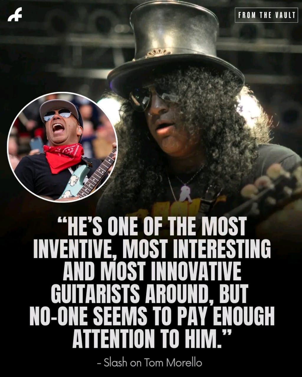 Slash named Tom Morello as one of the most underrated rock guitarists of all time…..