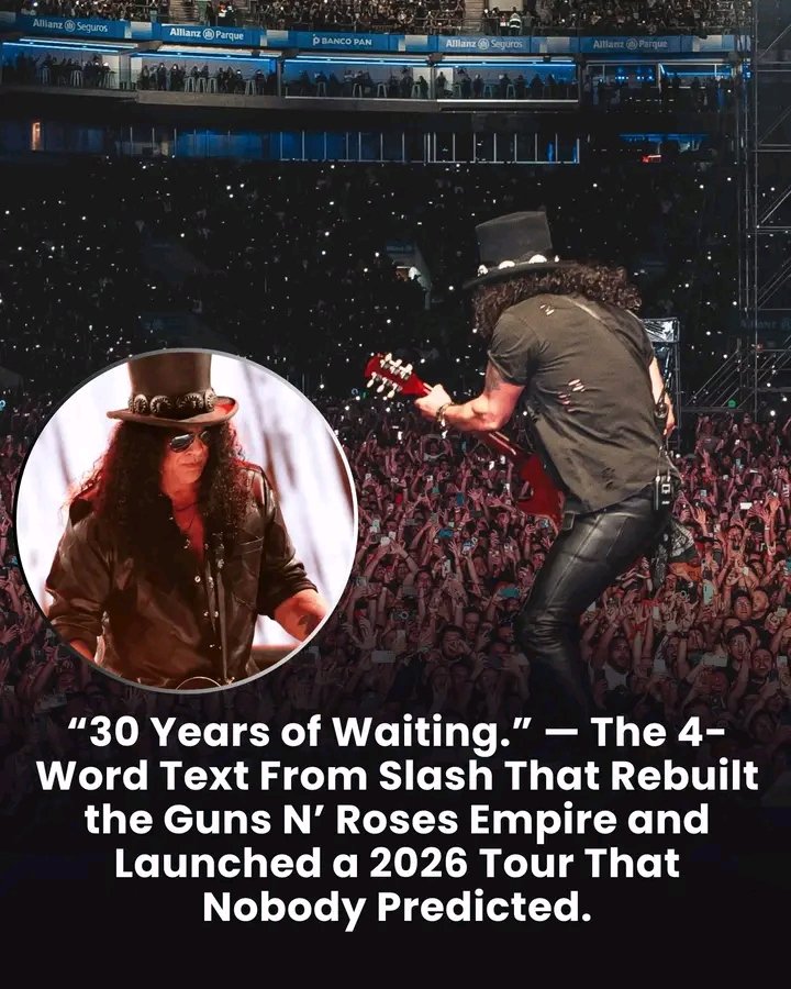30 Years of Waiting.” — The 4-Word Text From Slash That Rebuilt the Guns N’ Roses Empire and Launched a 2026 Tour That Nobody Predicted. After decades of silence and feud rumors, Slash says a fragile truce with Axl Rose has evolved into a true “democracy” inside Guns N’ Roses. A cryptic four-word text reportedly sparked the reunion—and now a massive 2026 world tour and long-promised new music hang in the balance. Is this the masterpiece fans waited 30 years for… or calm before another storm?…..