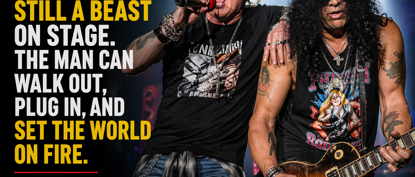 According to insiders close to recent tour conversations, Axl didn’t hold back. He reportedly described Slash as “still a beast on stage,” someone who can “walk out, plug in, and set the world on fire.” It’s the kind of raw, unfiltered respect that only comes from years of shared historyboth turbulent and triumphant.
