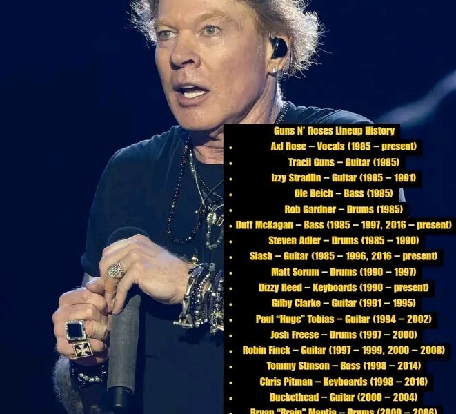 Few bands in rock history have lived as loudly, fought as fiercely, and reinvented themselves as often as Guns N’ Roses. Behind the explosive riffs, sold-out stadiums, and rebellious attitude lies a lineup history that reads like a rollercoaster packed with drama, departures, shocking returns, and unforgettable eras.